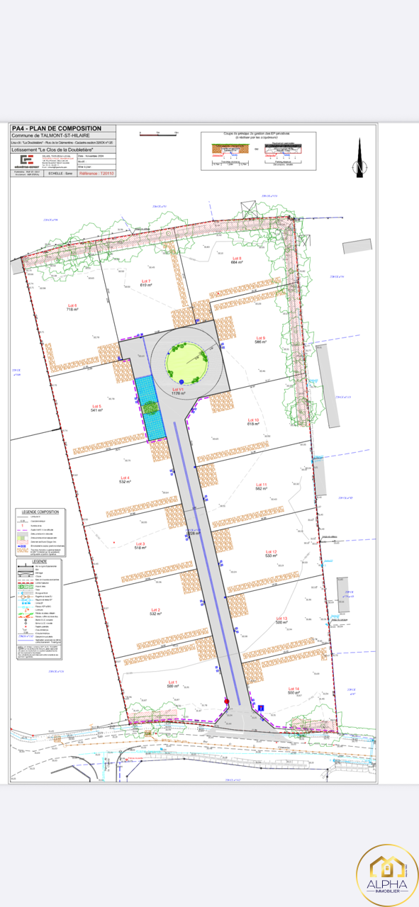 Alpha-Immobilier vous propose ce beau terrain d'une surface de 619 m², vendu viabilisé en eau, éléctricité, tout à l'égout, et libre de constructeur.