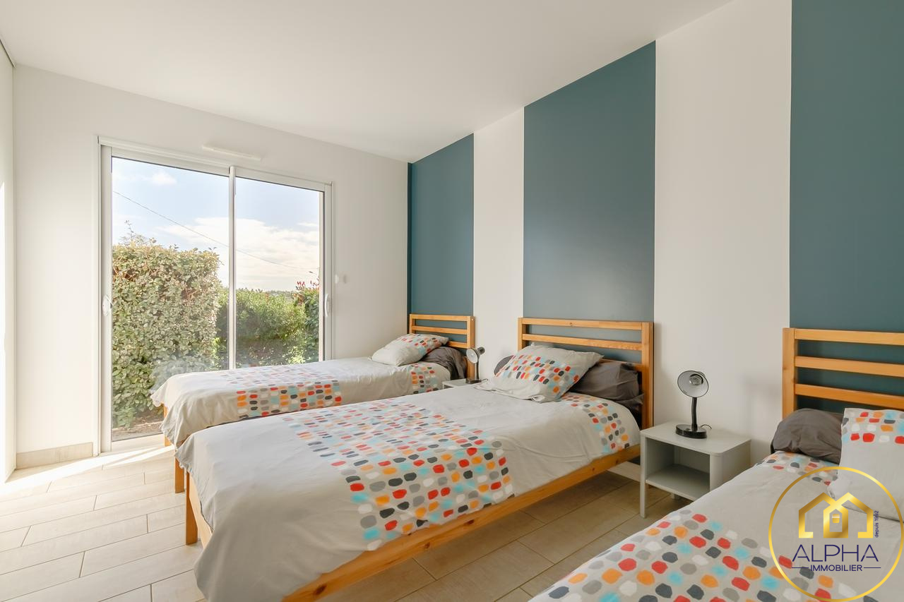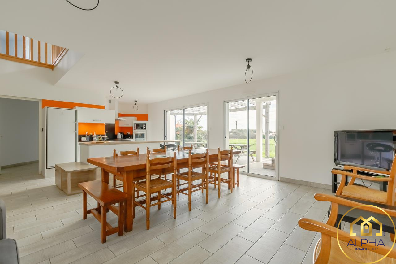 A vélo du centre ville de Talmont, des écoles, du collège et de la plage, cette maison est idéalement placée et saura vous séduire par ses nombreuses chambres et salles d'eau avec un rez de chaussée entièrement aux normes handicapées qui comprend une pièce à vivre avec cuisine aménagée et équipée, un dégagement, 3 chambres dont 2 avec dressing, une salle de bains avec douche et baignoire, une salle d'eau, des toilettes, une buanderie, un local technique et un grand garage de plus de 27m². A l'étage : un grand palier en mezzanine ouverte, une très grande chambre, une salle d'eau et des toilettes.